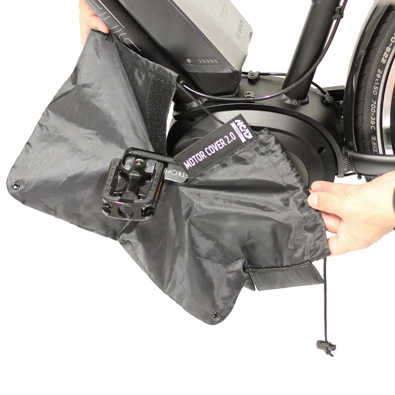 La housse de protection pour moteur NC-17 Connect se fixe facilement à l’aide d’une bande velcro et de cordons. Elle s’adapte de manière optimale à la géométrie de votre moteur central. Pour plus d’informations sur le montage, aidez-vous des photos présentées ici.